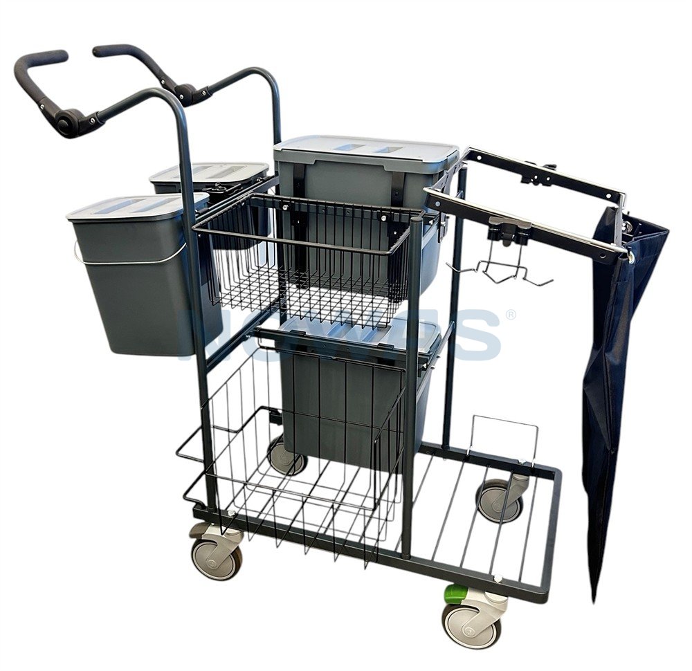 Vognen er ideell for profesjonelle brukere som jobber med forberedt rengjøringsutstyr og trenger en organisert og ergonomisk arbeidsstasjon.
