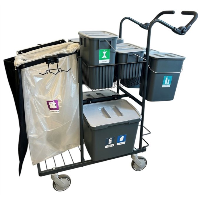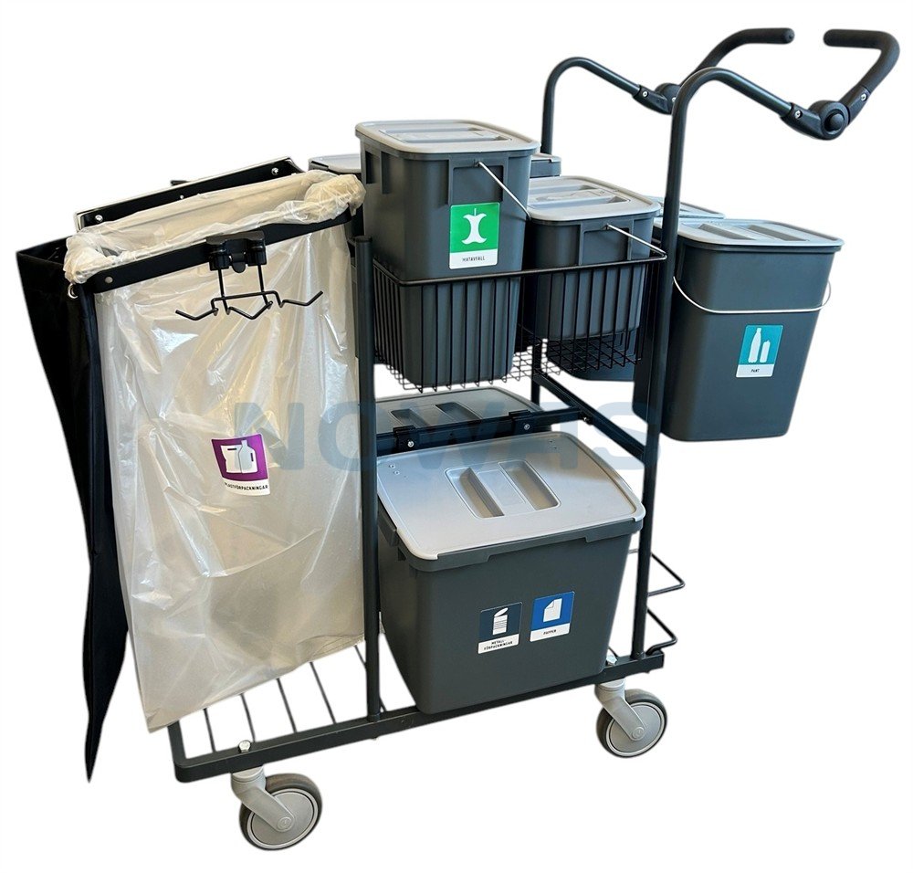 Sorteringsvognen Metod er en robust og gjennomtenkt løsning som gjør det enkelt å kombinere rengjøring og avfallshåndtering perfekt for profesjonelle miljøer med fokus på effektivitet og bærekraft.
