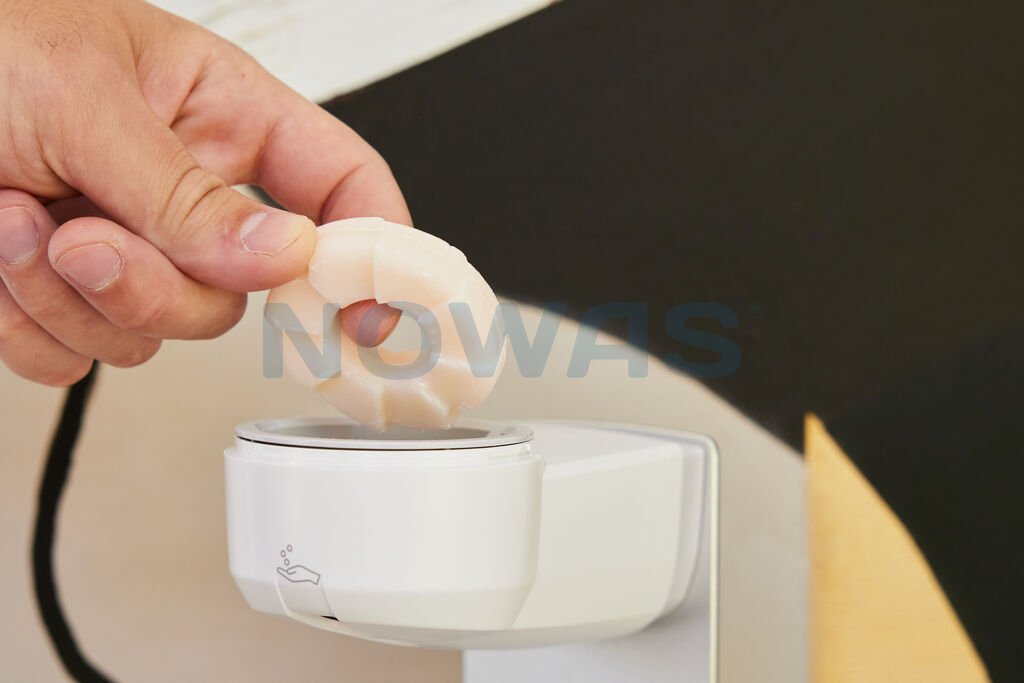 - Dispenseren har plass til 3 håndsåpestykker med totalt 600 doser.