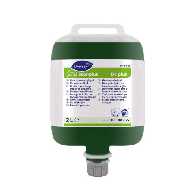 Suma Star plus D1 plus og Suma Star plus D1 er høykonsentrerte nøytrale flytende håndoppvaskmidler, egnet for rengjøring av alt kjøkkenutstyr. Produktets optimale sammensetning av anioniske og ikke-ioniske overflateaktive stoffer sikrer at fett og fastsittende matrester fjernes effektivt og gjør skyllingen enkel og stripefri. For å oppnå riktig dosering av Suma Star plus D1 plus og Suma Star plus D1, må doseringen gjøres via Diverflow med henholdsvis Surelink og Diversey Divermite Dispenser.