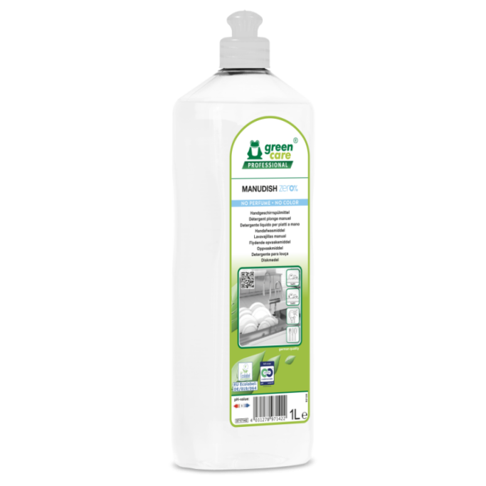 Manudish Zero% er et økologisk, intensivt oppvaskmiddel som tar vare på menneskers helse og rengjøringspersonalets sikkerhet ved å respektere biologiske sykluser.