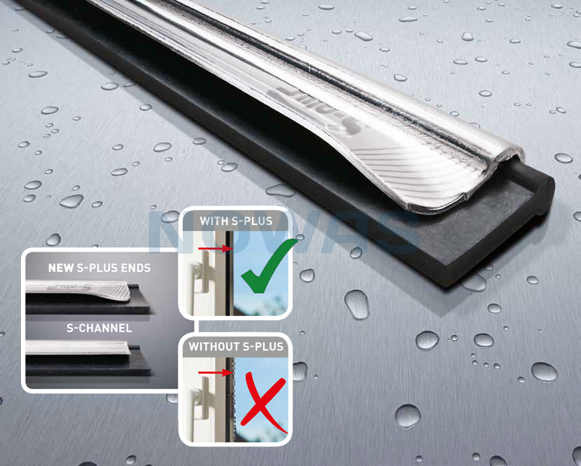 - Bøyde kanter på nalskinnen støtter gummikant, og gjør det lettere å rengjøre helt opp til kanten av vinduet.