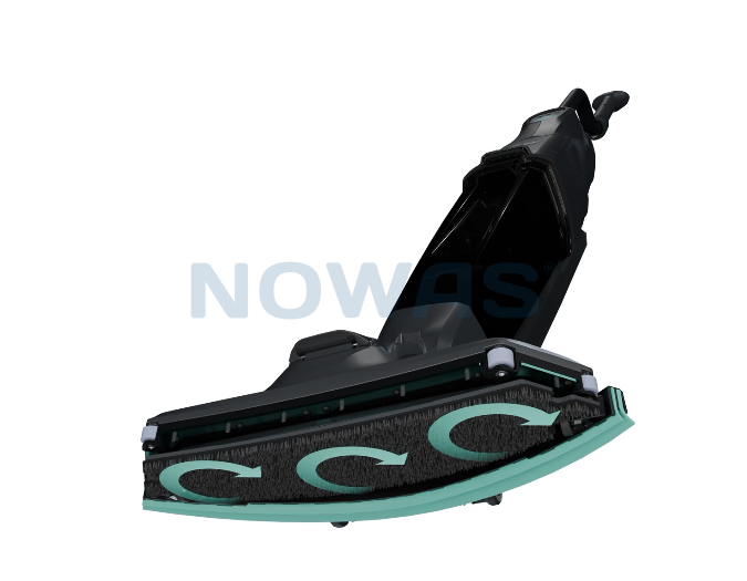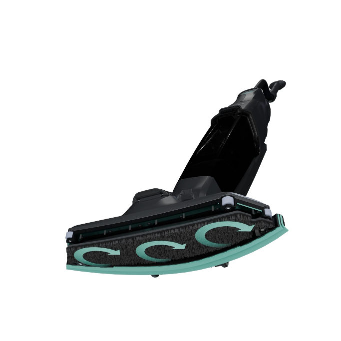 Den spesialdesignede børstehodet og glidehjulene sikrer at DRYFT rengjør helt ut til vegger og hjørner, uten å etterlate striper.