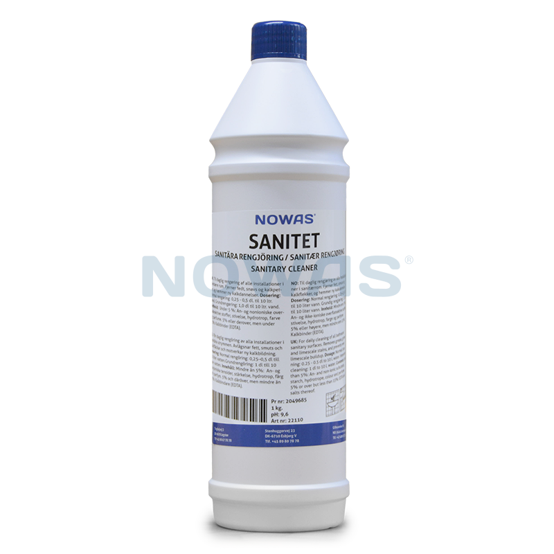 SANITET etterlater strålende rene overflater og eliminerer i stor grad periodisk fjerning av kalk. Et høykonsentrert sanitærrengjøringsmiddel med effektiv fettløselighet. Vår alkaliske sanitærrengjøringsmiddel er for rengjøring og avkalking av alle syrebestandige flater som sanitærgods, fliser og rustfritt.