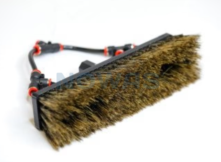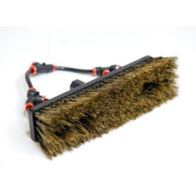 Vannbåren børste designet for den erfarne vindusvaskeren. Denne amerikanskproduserte vannbærende børsten er laget av naturlig villsvinhår, laget for å takle selv de mest krevende oppgaver. Mens nylon kun er effektivt med spissen mot glasset, renser og skrubber det de naturlige fibrene i villsvinhåret effektivt uansett retning. Dette gjør det mulig å rengjøre i hjørner og sprekker ved å presse børstens fibre mot glasset og utnytte hele overflaten av villsvinhåret.