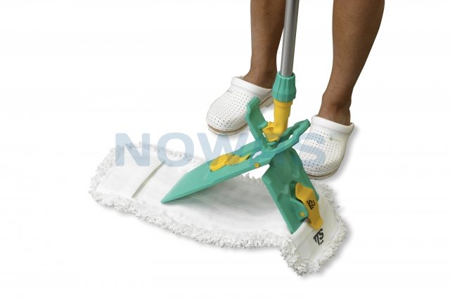 TTS Moppe rammen er karakterisert av den gule utløserknappen som lett betjenes med foten. Med avrundede kanter, for enda enklere montering av flat mopper.