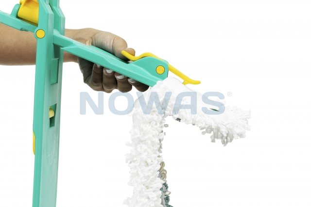 Dette er en moppramme med klaff og er utstyrt med en praktisk klips som utløses når mopp ramme brettes.