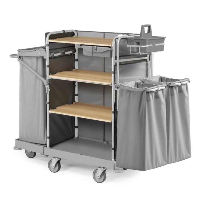 - Tilpassbar: to etiketter på bunnen av vognen kan ha rengjøringsfirmaets logo.
