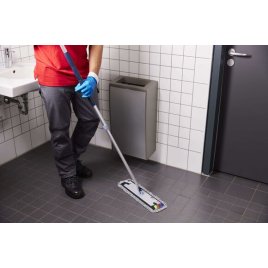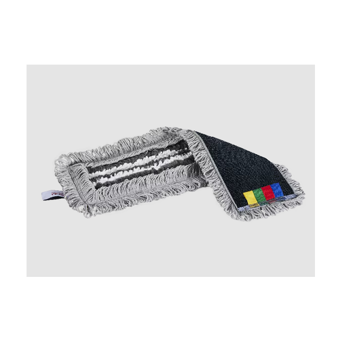 - Kantsydd og sterk borrelås: Gir stabilitet til moppen slik at den ligger flatt på gulvet, noe som gjør det enklere å ta den av og på. Materen holder seg godt fast på moppen gjennom hele rengjøringsprosessen. Minimerer partikkellekkasje.
