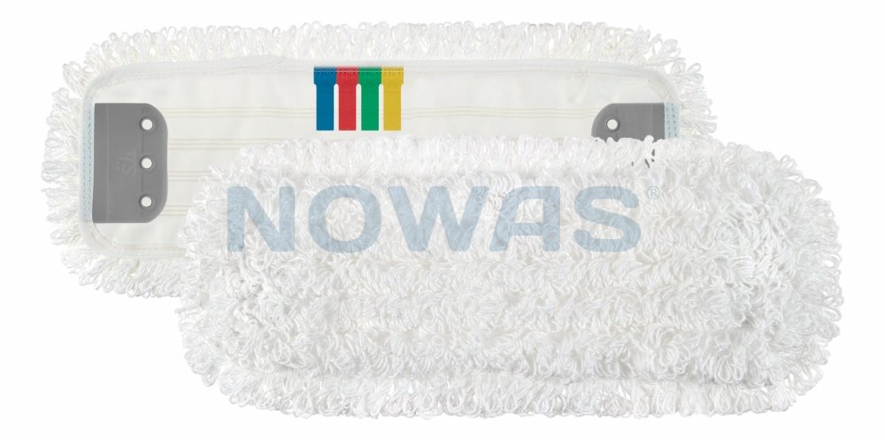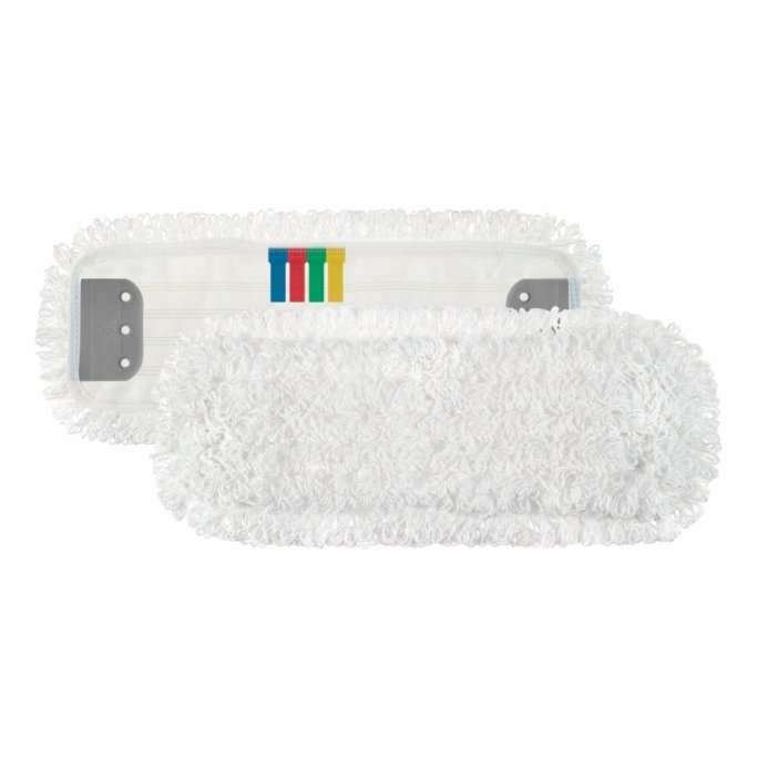 Moppe med en polyester-bakside. Baksiden har to klaffer med 3 hull, som er designet for Wet System moppramme - Se kompatible produkter.