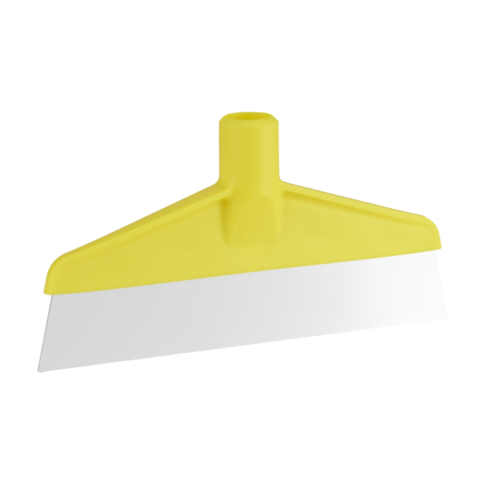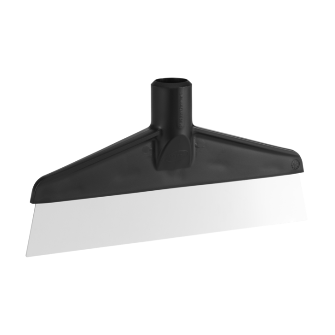 Fjern gjenstridige matrester eller etiketter fra gulv og andre overflater med denne bord- og gulvskrapen. Utstyrt med et solid og slitesterkt skrapeblad i rustfritt stål. Kan brukes med alle Vikan-gjengede håndtak.