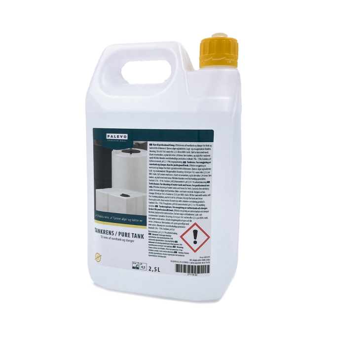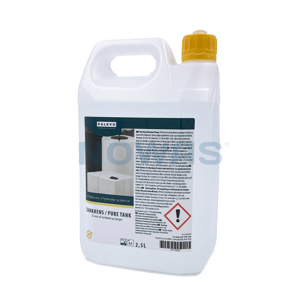 Effektiv rengjøring av vanntanker og slanger for friskt og bakteriefritt drikkevann. Fjerner alger og bakterier. Lukt- og smaksnøytral. Oksygenaktiv.