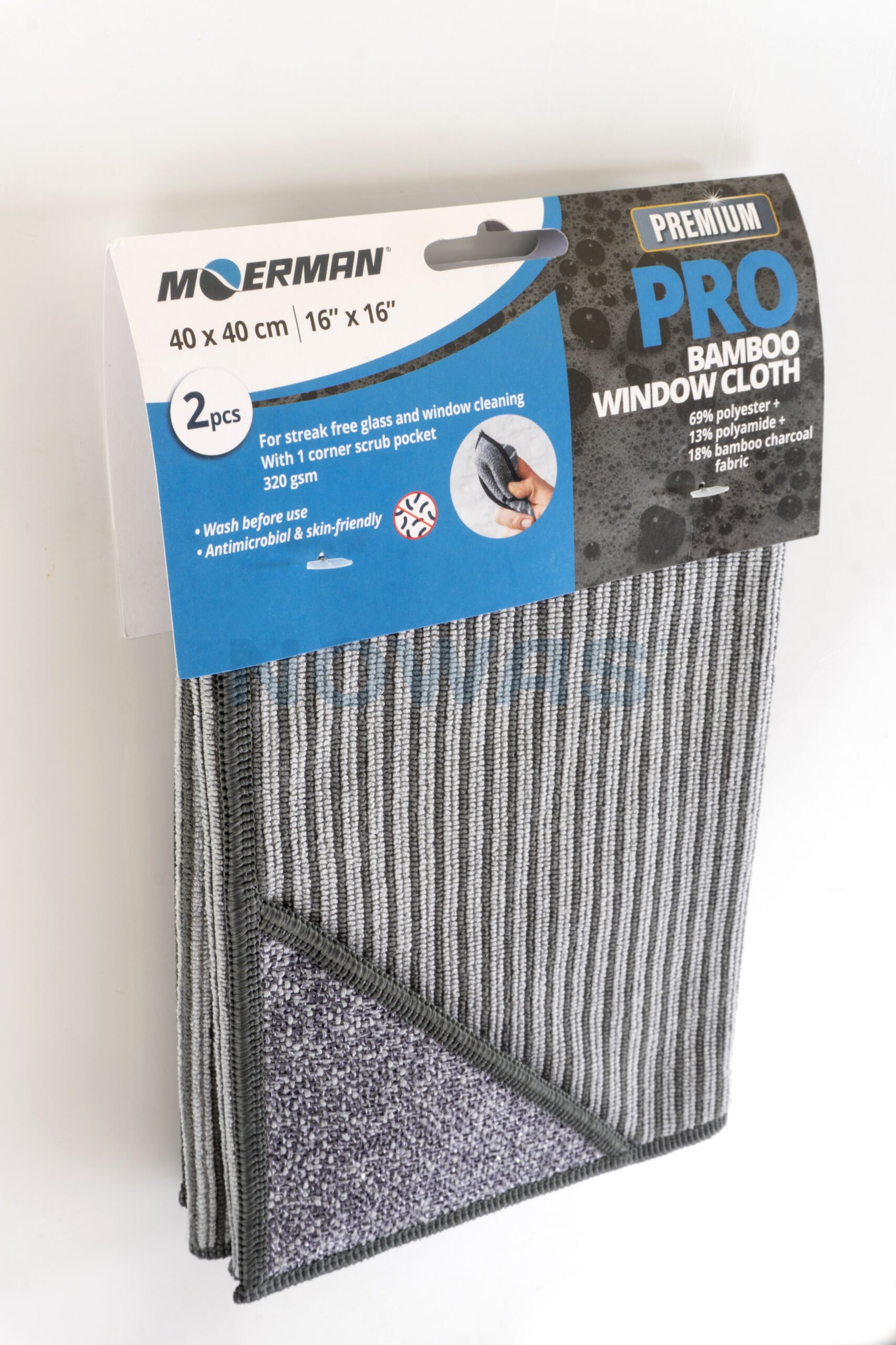 Moerman Pro bambus mikrofiberklut med hjørnelomme, 2 stk.