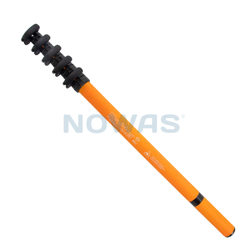 MaykkerMini fra Maykker er en effektiv teleskopstang for f.eks. utstillingsvinduer og enetasjes boliger. Med en flott finish er denne lette stangen utstyrt med et førsteklasses klemsystem. De 5 delene av karbonfiber strekker seg til 2,5 meter og er bare 68 cm lang når den presses sammen. Denne teleskopstangen fra Maykker er perfekt for arbeid i områder hvor det ikke er mye plass, f.eks. trapperom, rundt bommer eller andre hindringer.