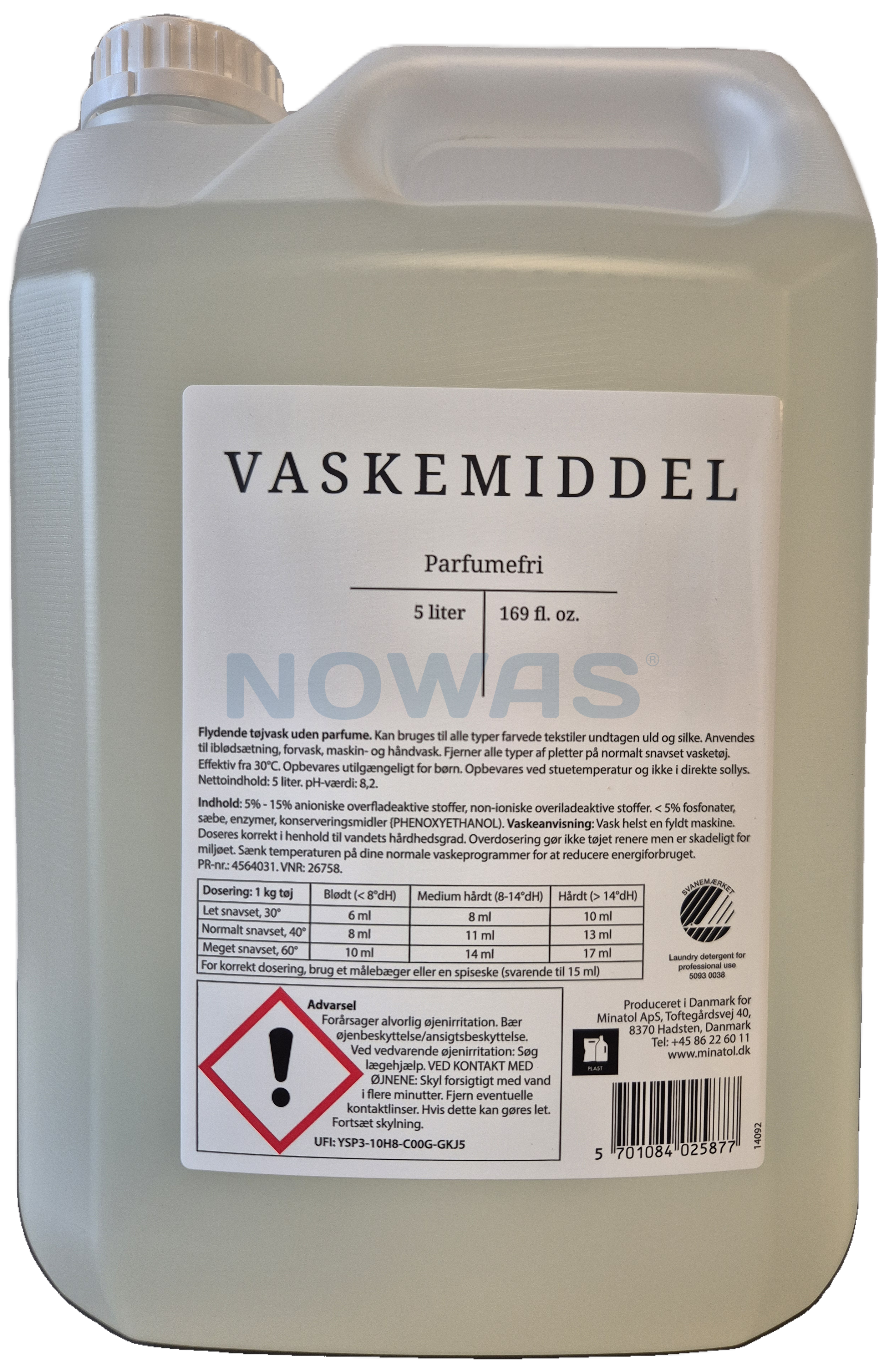 Flytende vaskemiddel 5 l. uten parfyme, svanemerket