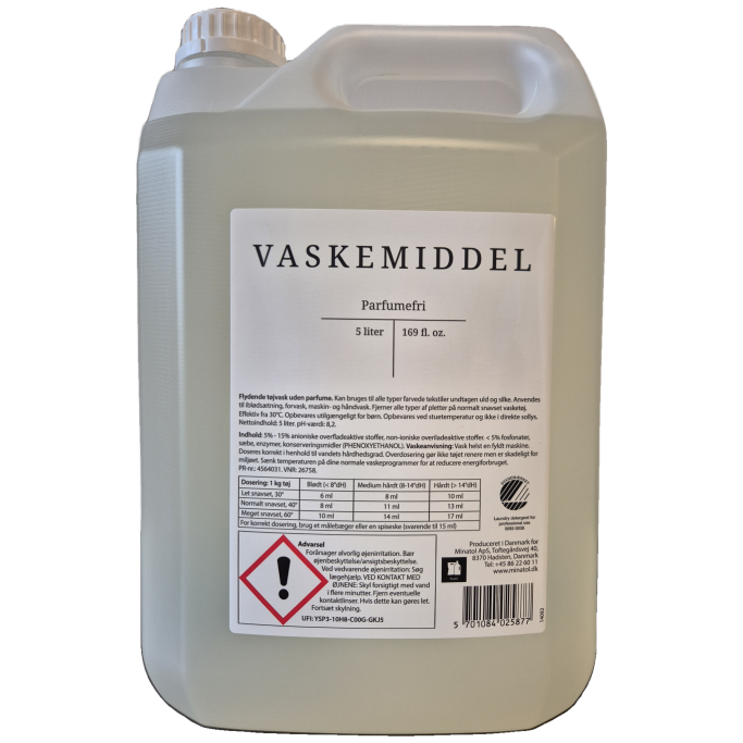 Parfymefritt og svanemerket flytende vaskemiddel.