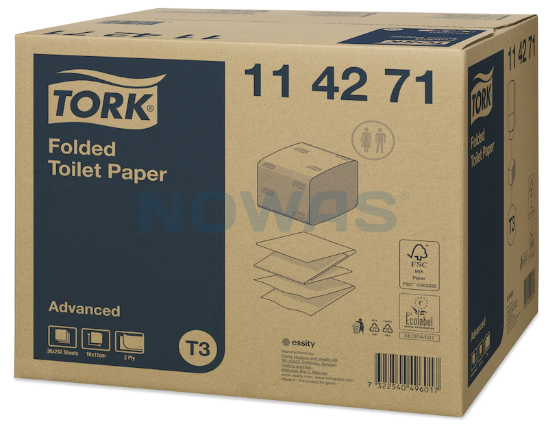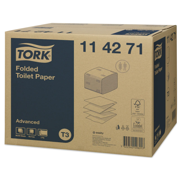 Tork T3 114271 Toalettpapir Ark Advanced 2-lags, 36 pk, 8712 ark-T3 Advanced toalettpapir, 2 lags, fra TorkToalettpapir i ark til Tork 3 dispenser. Mykt og godt absorberende papir.