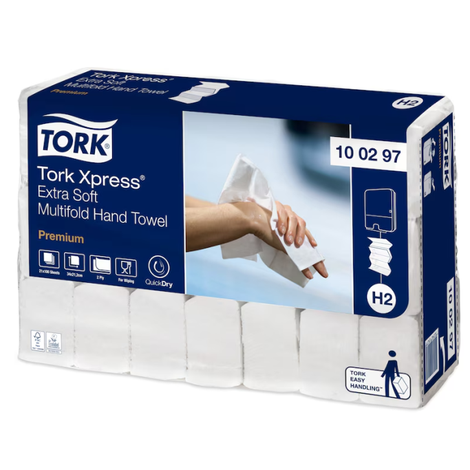 Tork Xpress(R) Multifold Håndtørk er utmerket for omgivelser som krever høy komfort og optimal hygiene: restauranter, kontorbygg og helsesektoren