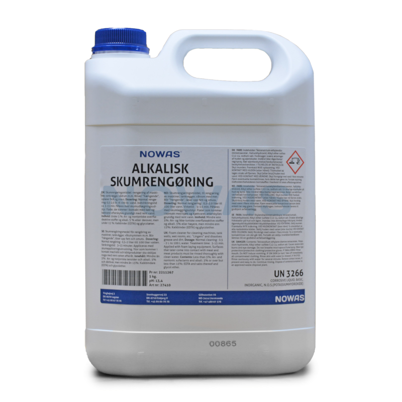 Alkalisk rengjøringsmiddel til skumrengjøring av maskiner, tankvegger, bakerier, slakterier, våtrom og andre rom.
