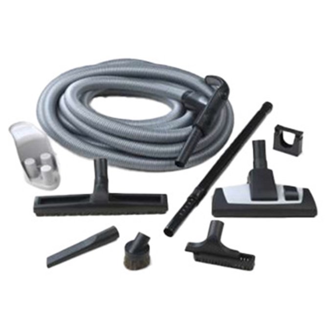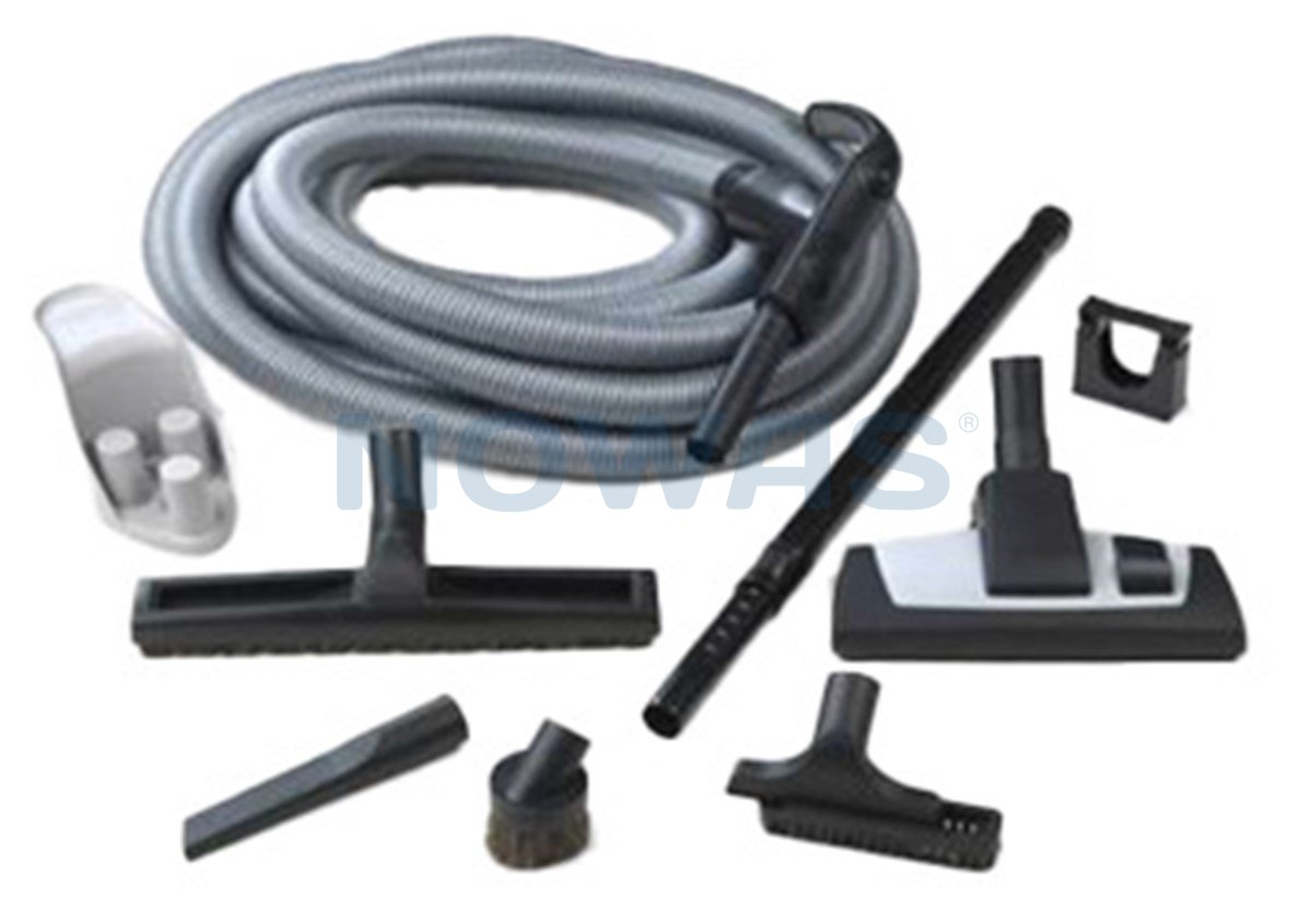 Inneholder: Sugeslange 9 meter med start/stopp, teleskop sugerør i aluminium, fugemunnstykke, møbelbørste, møbelmunnstykke, kombimunnstykke, parkettmunnstykke og slangeholder.