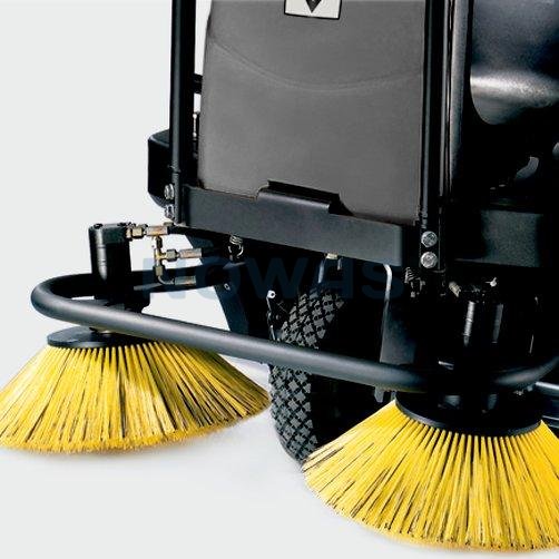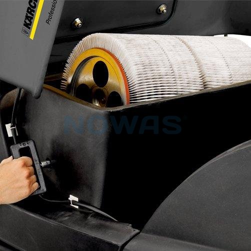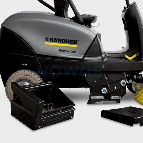 Drift: 24 V/600 W DC-motor - 1 pedal for kjøring fremover/bakover - liten svingradius (3350 mm) - automatisk parkeringsbrems - automatisk motorstopp når føreren går av setet. Feie-/oppsugingssytem: Denne maskinen bruker overthrowsystemet, rullebørsten kaster smusset opp og tilbake ned i avfallsbeholderen. Den flytende rullebørsten tilpasses automatisk ujevne underlag. Filteret og hovedbørsten kan byttes uten verktøy. Med integrert grovsmussluke til f.eks. brusbokser, grus eller våte blader. Sidebørstene og rullebørstene er hydraulisk drevet. En ekstra valgfri sidebørste er tilgjengelig. Avfallsbeholder: Begge 50 l smussbeholderne kan fjernes fra sidene. Operasjon: Sidebørstene og hovedrullebørstene kan senkes via en bryter. Inkludert batterier og lader.