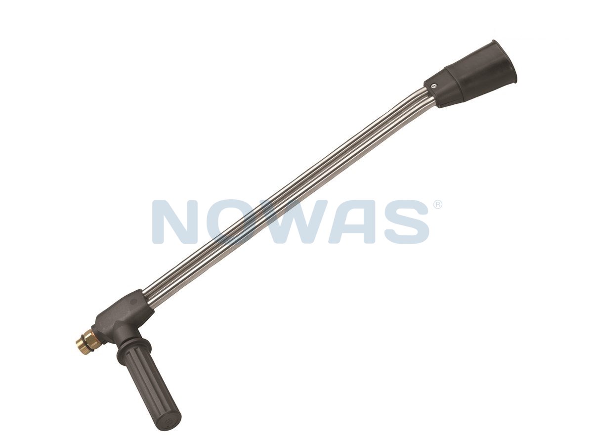 Dobbel rustfri spylelanse med M22 skrukobling mot start lanse som har mulighet for trinnløs regulering av spyletrykket. Derved kan f.eks. vaskemiddel utlegges uten å skifte arbeidsgrep. Spylelansen utstyres med dyser som har 1/4 utv. gjenger etter behov.