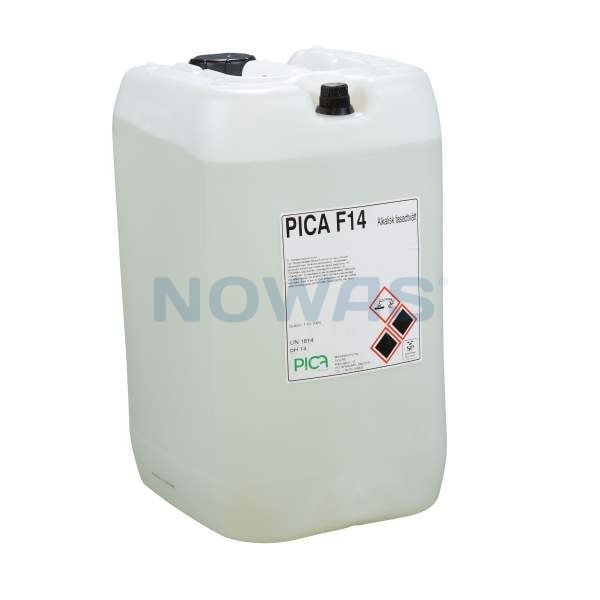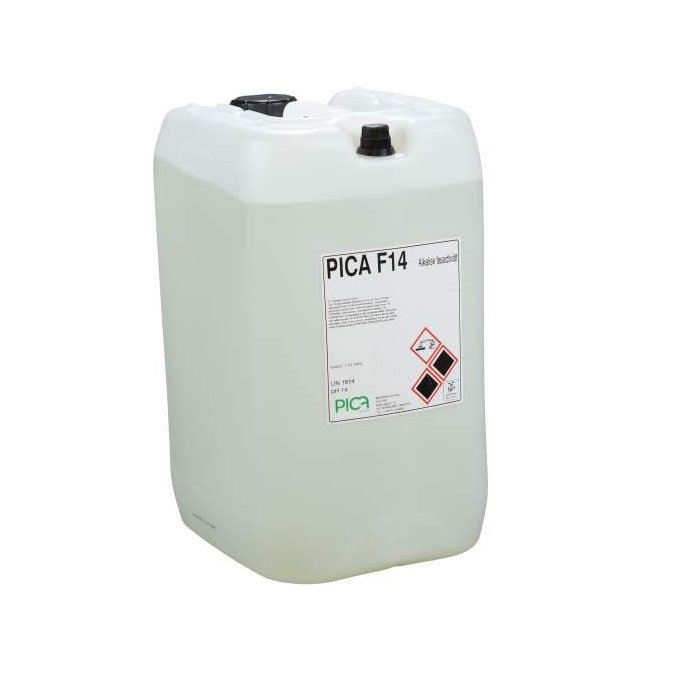 Pica F14 er et vannbasert alkalisk fasaderens, som brukes til å fjerne sot, smuss, trafikkfilm, alger, mugg etc. fra fasader. Midlet kan brukes på harde så vel som porøse overflater.