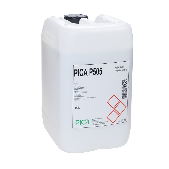 Pica P505 er en voks- og vannbasert graffitibeskytter som effektivt beskytter mot de fleste typer spray-, pensel-, blekk- og tectylgraffiti. Denne graffitibeskyttelsen er en såkalt offerbeskyttelse, som betyr at overflaten skal beskyttes på nytt etter graffitifjerning, da beskyttelseslaget forsvinner helt eller delvis ved fjerning. P505 graffitifjerner legger seg som en beskyttende film og hindrer graffiti maling i å trenge inn i underlaget. Skyggedannelse og slitasje på underlaget er derfor sterkt redusert, sammenlignet med fjerning med graffitifjerningskjemikalier. Forskjellen vil være tydelig etter flere behandlinger, da overflaten som er behandlet uten graffitibeskyttelse vil slites betydelig hardere.
