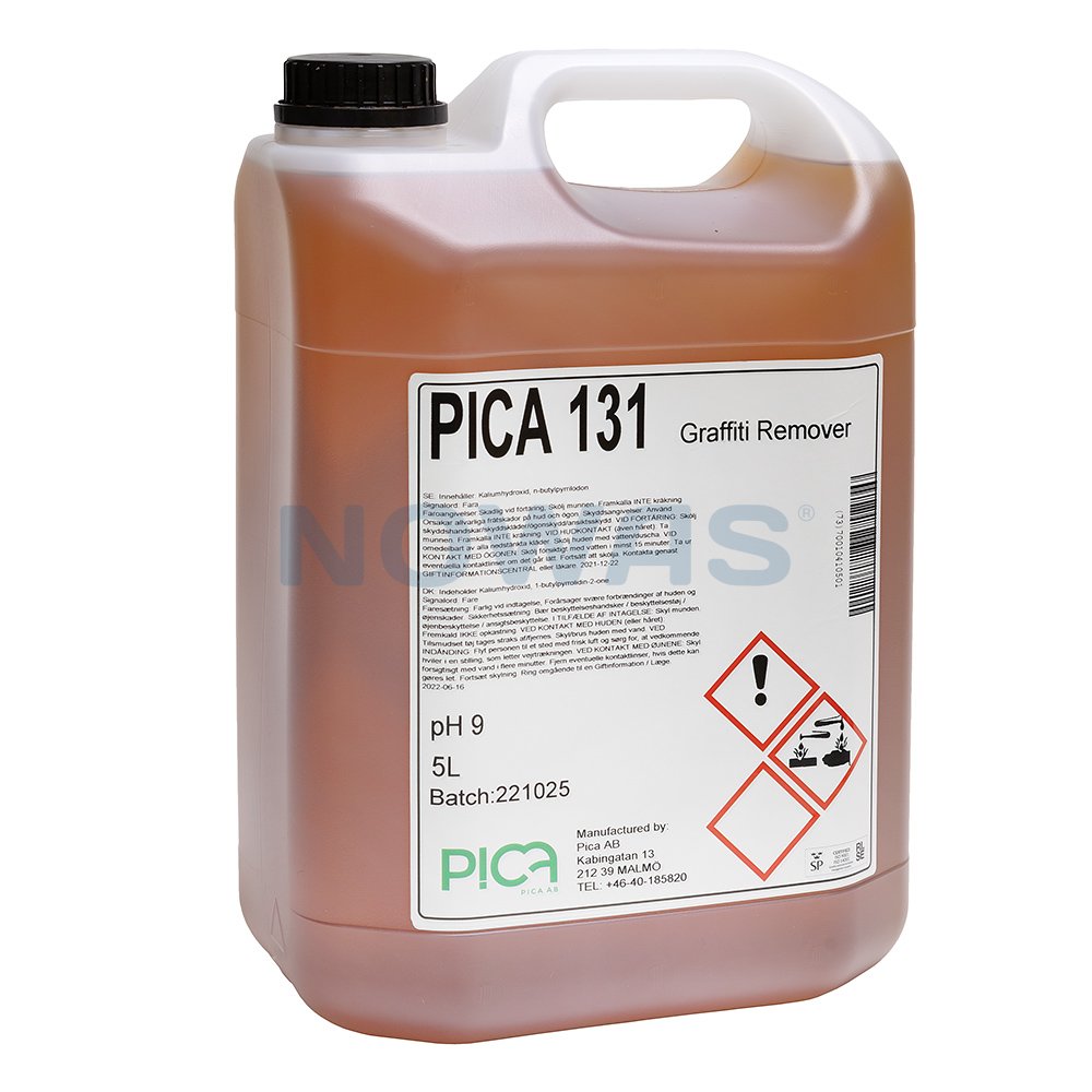 Pica 131 er en tusjfjerner med svært bredt spekter som kan brukes på de fleste overflater. Pica 131 brukes imidlertid primært på ikke-porøse overflater. Pica 131 er så effektiv at den også kan brukes på vanskelig anilinbasert graffiti. Bruk gjerne Pica 131 som et supplement eller alternativ til Pica Easy Off.